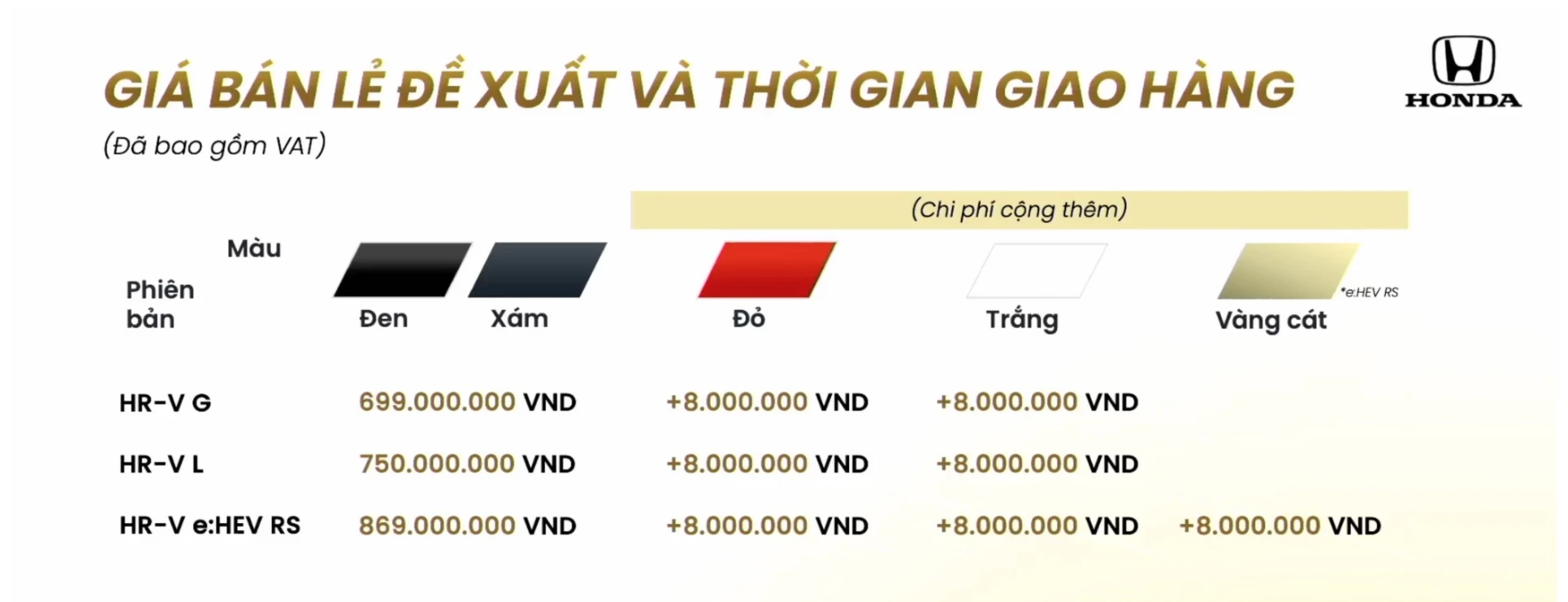 • HONDA HR-V G : GIÁ: 699.000.000 VNĐ