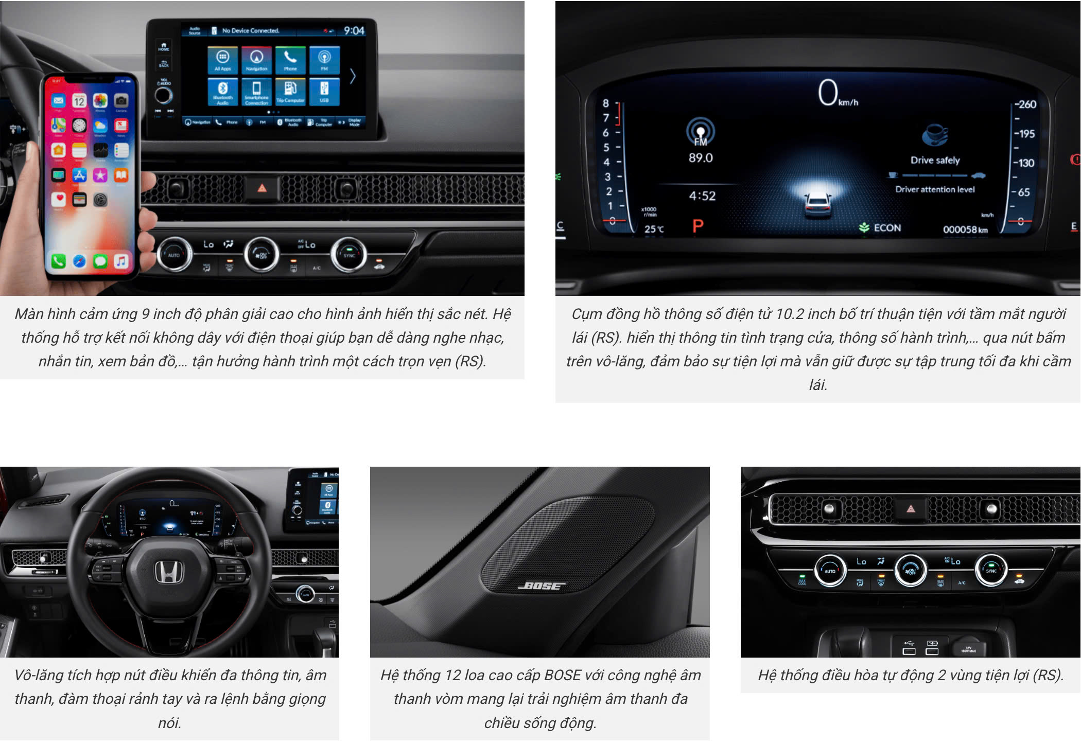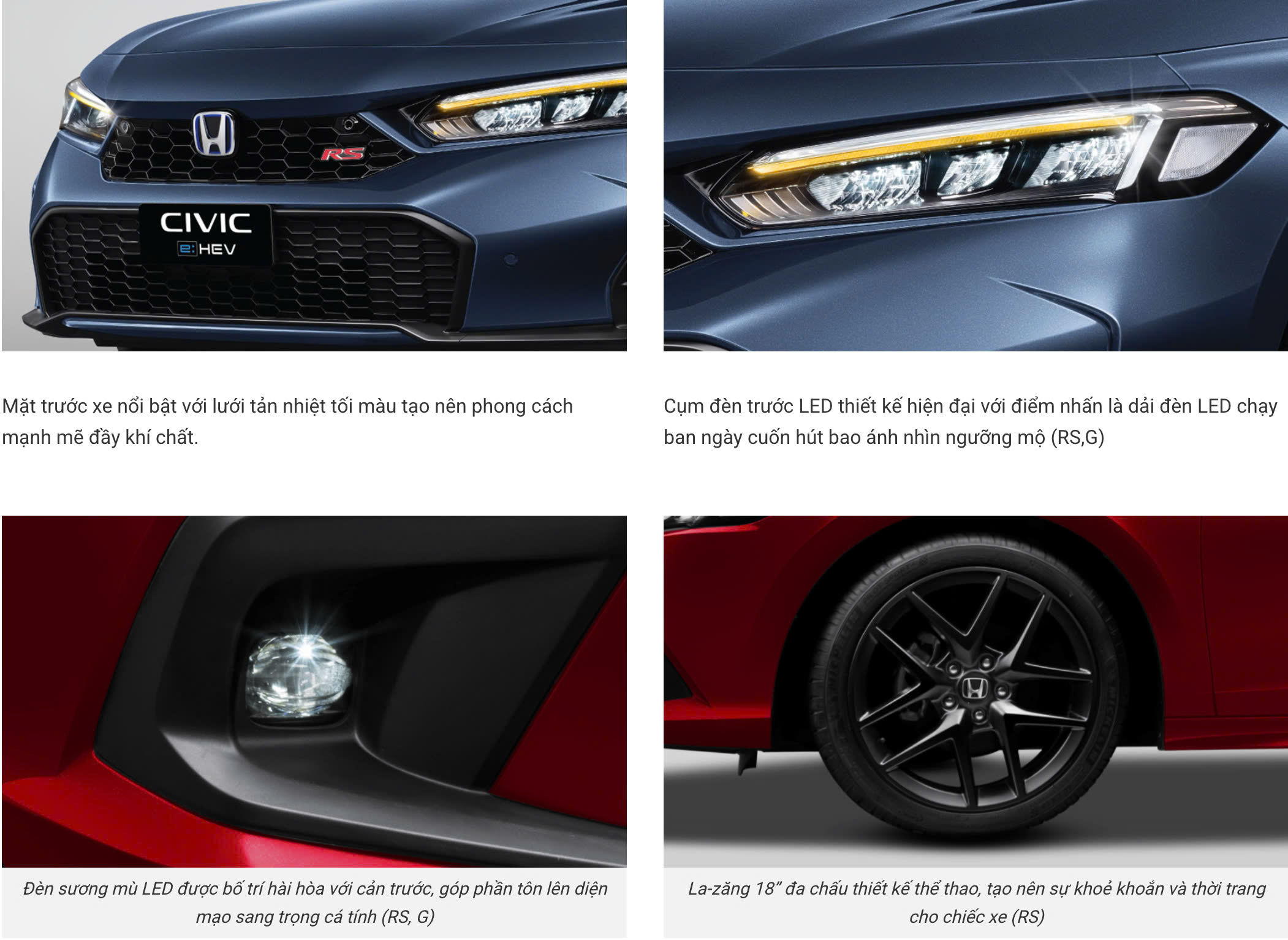 Tên Xe Honda Civic G Honda Civic RS Honda Civic e:HEV RS