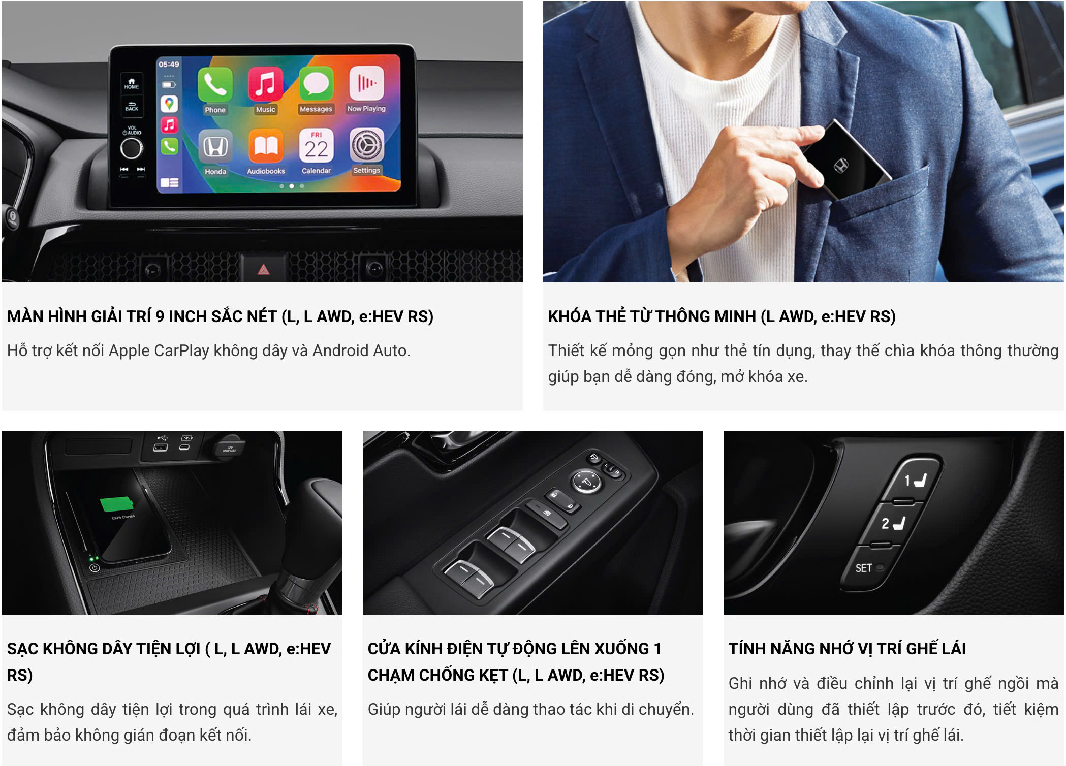 • Tiện nghi tối đa với khoang nội thất rộng rãi cùng các hàng ghế linh hoạt phù hợp với phong cách sống đa dạng; Hệ thống kết nối viễn thông ưu việt Honda CONNECT trên tất cả các phiên bản giúp chủ sở hữu dễ dàng kết nối, quản lý chiếc xe của mình; Các trang bị, công nghệ hiện đại hỗ trợ tối đa và đem lại sự thoải mái toàn diện cho người lái và hành khách trên xe.