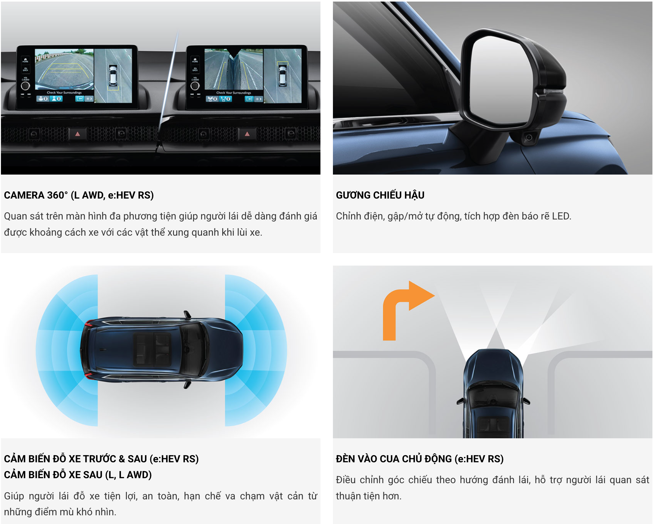 • An toàn tiên tiến với hệ thống công nghệ hỗ trợ lái xe an toàn tiên tiến Honda SENSING được trang bị trên tất cả các phiên bản giúp tất cả thành viên trên xe luôn an tâm và tận hưởng trọn vẹn niềm vui trong mỗi chuyến đi.