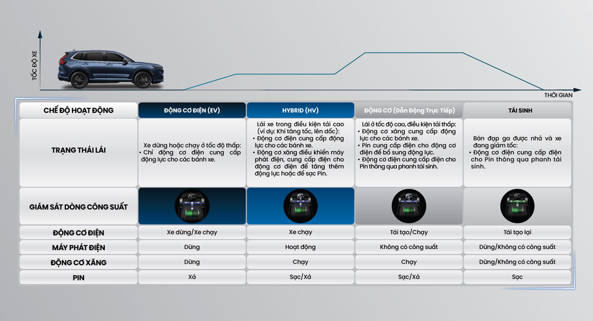 Honda CR-V Hệ thống Hybrid kết hợp xăng & điện hoàn toàn mới mang đến trải nghiệm lái ngoạn mục, đậm phấn khích. Hơn nữa còn tiết kiệm nhiên liệu & thân thiện với môi trường.